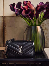 The Loulou Mini is an enduring Saint Laurent icon, elevated in sleek black lambskin. The color sharpens the silhouette, creating a bag that is architectural, essential, and forever timeless.