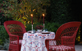 Hand-Embroidered Viana Beige Linen with Blue Embroidery Tablecloth and Napkin Set