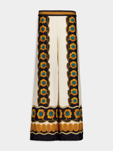 Elevate your style with these Palazzo Pants in Dazed Placée Black Floral Silk Twill. With a high-waisted, flared silhouette and a wide-leg fit, these trousers offer the elegance of a skirt with the comfort of pants. Crafted in luxurious Italian silk twill with a hand-placed floral print, they are effortlessly chic and versatile.