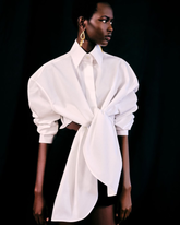White Double-Breasted Twill Blazer