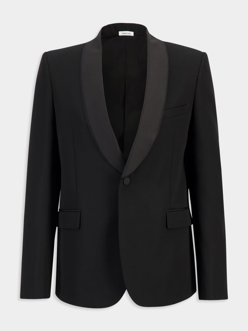 These tailored trousers by Alexander McQueen are crafted from responsible Japanese barathea wool, combining sustainability with refined design. Presented in a sleek black tone, the trousers feature a streamlined cut with sharp creases, a concealed closure, and a polished finish that embodies modern tailoring. Versatile and timeless, they are an essential piece for both formalwear and elevated everyday ensembles.