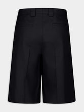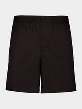 These black shorts are crafted from a technical twill blend of nylon and cotton, combining functionality with sleek design. Featuring a water-repellent finish, they are detailed with an elasticated waistband, internal drawstring, buttoned fly, and a back patch pocket. The metal "ami alexandre mattiussi" logo lettering adds a signature touch. With a classic fit, these shorts offer elevated comfort and style for urban or active settings.