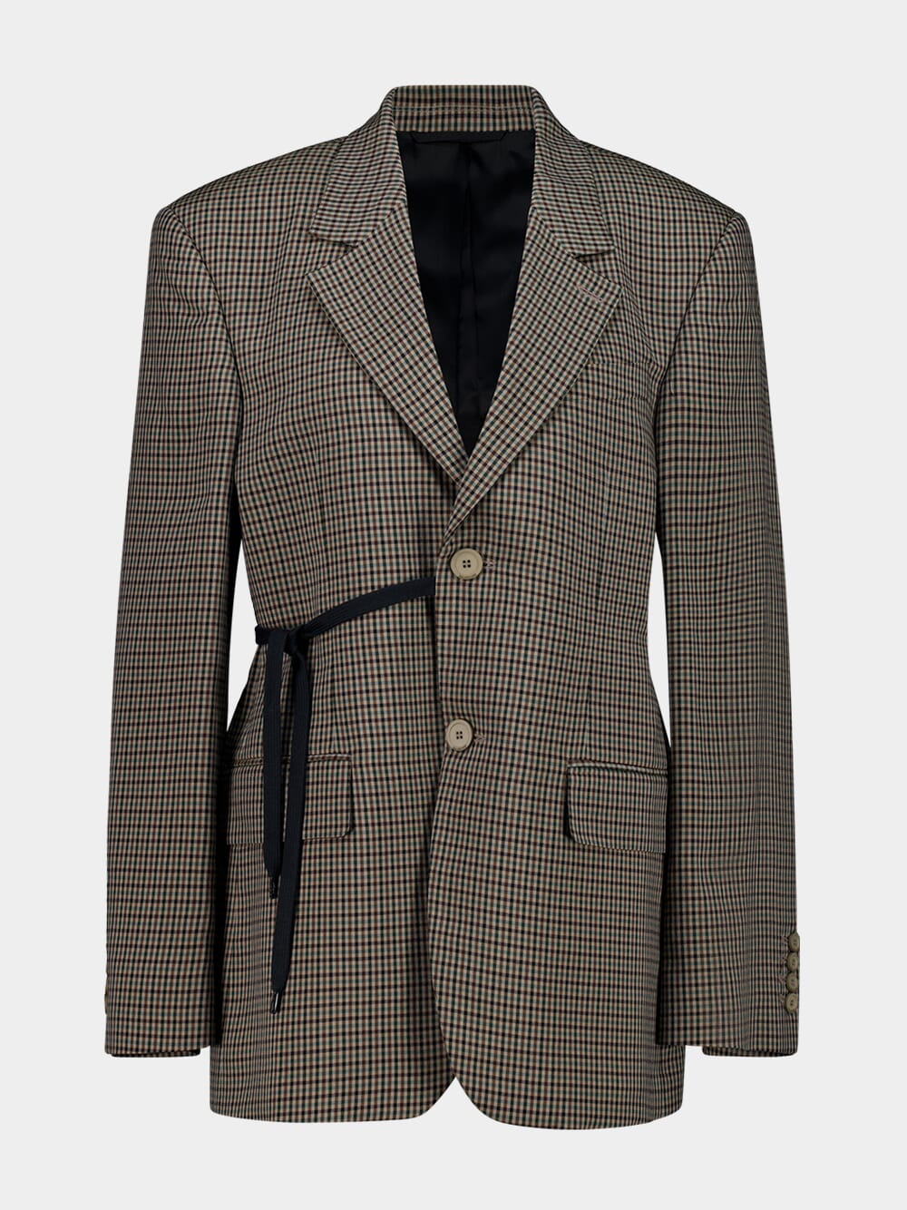 These large tailored trousers in khaki and brown check are crafted from fluid lyocell for a refined drape and soft texture. Featuring a mid-waist cut, front crease, and wide-leg silhouette, they offer an elegant reinterpretation of classic tailoring. Details include a concealed zip fly, six belt loops, front slash pockets, and a piped back pocket. Made in Italy, this piece blends structure and ease for sophisticated daily wear.