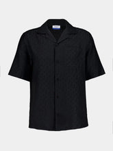 This dark navy short-sleeve shirt by Balenciaga embodies effortless sophistication with a minimalist button-up design. Crafted from fluid jacquard fabric, it features an all-over tonal logo pattern, adding a subtle yet distinctive touch. The relaxed silhouette enhances comfort, making it a versatile piece for both casual and refined styling. Perfect for those who appreciate understated luxury with modern elegance.