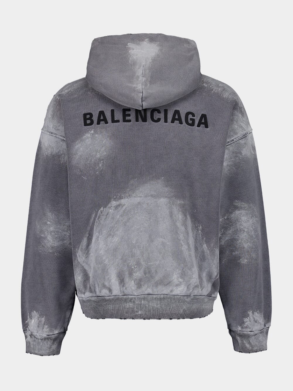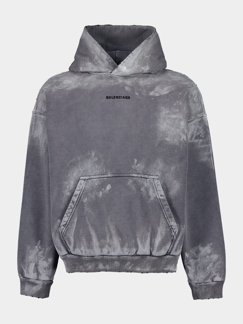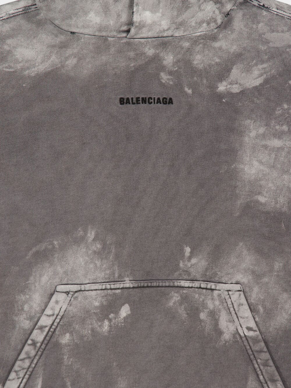 This grey medium-fit sweatshirt by Balenciaga offers a contemporary and relaxed silhouette, crafted from premium 100% cotton fleece. Featuring dropped shoulders and a hood without a drawstring, it exudes effortless style. The front kangaroo pocket, gathered cuffs, and waistline add both functionality and comfort. The embroidered Balenciaga logo on the front and back completes the design, making it a versatile staple for elevated casual wear. Made in Portugal.