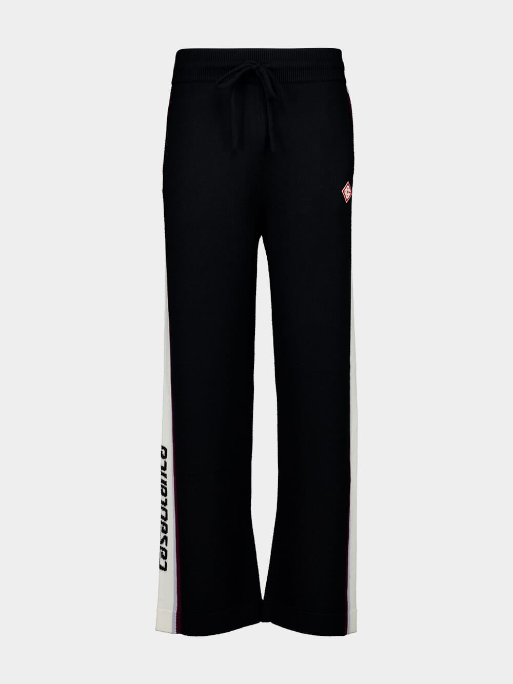 This merino wool track jacket by Casablanca elevates athletic wear with couture craftsmanship. Featuring a textured knit construction in black, red, and white, it includes a full-zip closure with the signature diamond logo and bold stripe detailing across the chest and sleeves. Finished with Casablanca branding and a relaxed fit, it blends sportswear ease with luxurious refinement. Made from 100% merino wool.