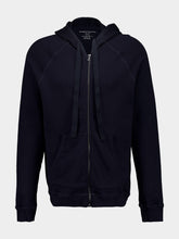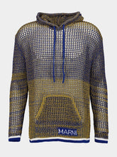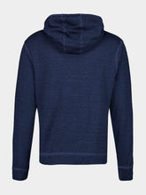 This colour-block quarter-zip hooded sweatshirt blends athletic functionality with refined craftsmanship. Made from organic cotton loopback fabric, it offers exceptional comfort and durability. The design features contrast navy and white panelling, a gold-tipped drawstring hood, a kangaroo front pocket, and ribbed cuffs and hem for a secure fit. Perfect for casual or sporty looks, this long-sleeve piece is both stylish and practical, showcasing a commitment to sustainable materials.