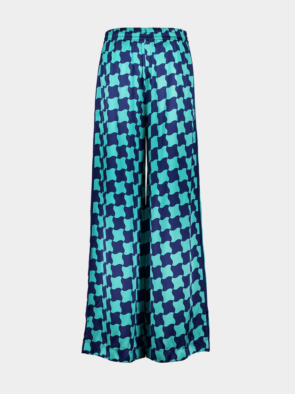 Blue Pool Tile Wide-Leg Silk Trousers