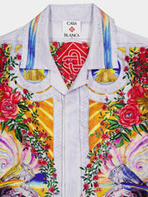 The La Tornade De Rose Short Sleeve Silk Shirt is a luxurious piece crafted from silk satin fabric, featuring a vibrant multicolour print. This shirt is designed with a Cuban collar, hidden button closure, and interlocking CC logo corozo buttons for a refined touch. Detailed edge accents on the collar, cuffs, hem, and placket add an extra layer of sophistication. Made in Italy, this elegant shirt combines timeless style with modern flair, perfect for making a bold statement in both casual and formal settings.
