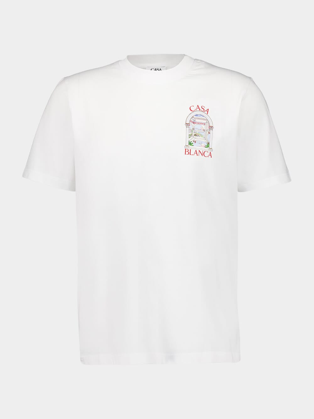 The Le Passage T-Shirt is a versatile short-sleeve piece crafted from 100% organic cotton. Featuring the house's seasonal artwork, it showcases a captivating design inspired by four dimensions and architectural perspectives. With a classic crew neck and a relaxed fit, this t-shirt offers both comfort and style. Perfect for casual wear, it is made in Portugal with attention to quality and sustainability. Fits true to size for effortless everyday styling.