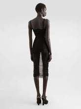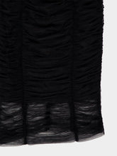 Black Tulle Calf-Length Draped Dress