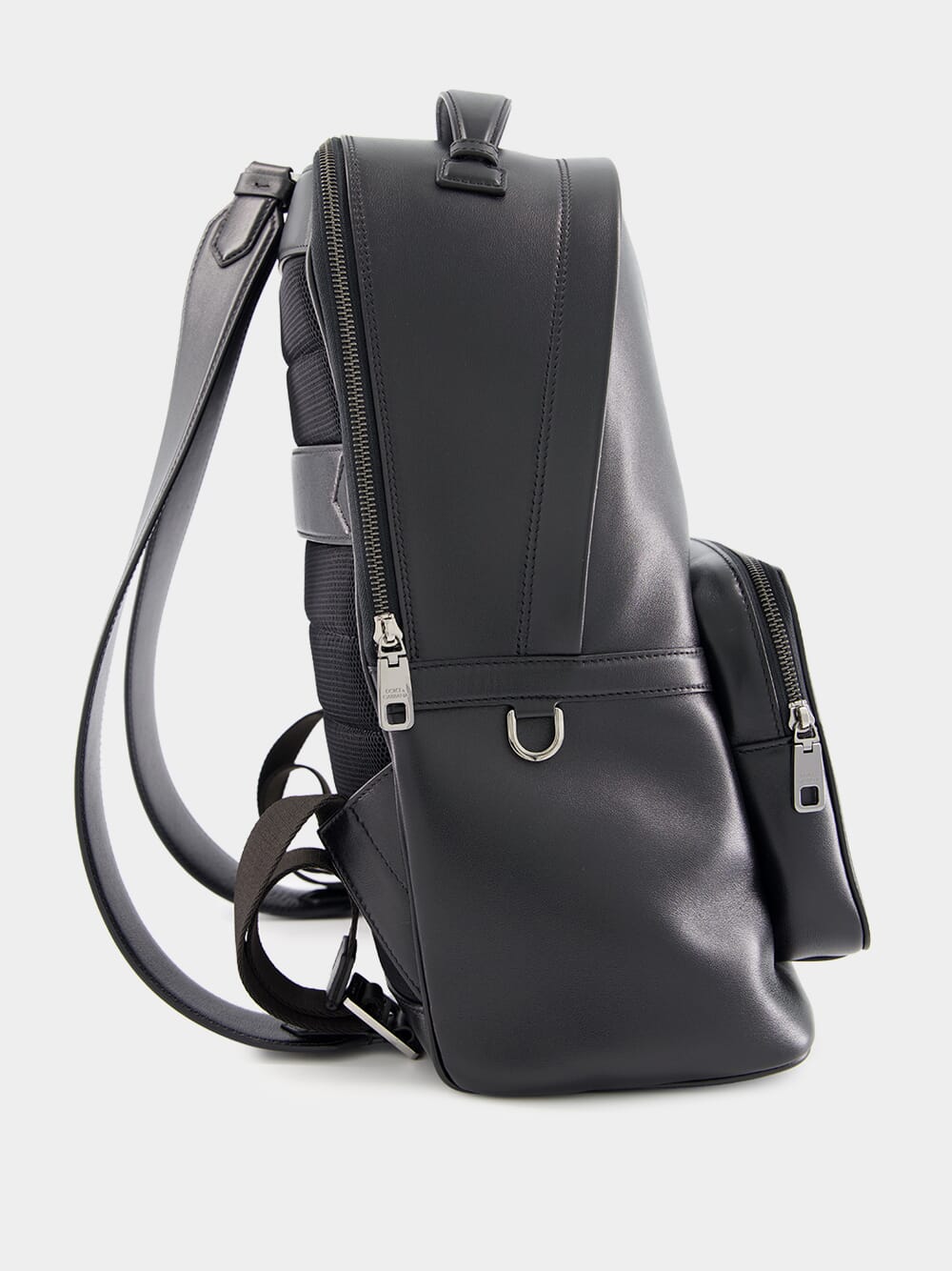 This Dolce & Gabbana leather backpack is crafted from 100% calf leather, combining luxury and practicality. The sleek black design features a single flat top handle and two adjustable shoulder straps for versatile carrying options. A front zip-fastening pocket adds functionality, while the all-around zip closure ensures secure storage. Designed for the modern man, this backpack is an essential accessory that effortlessly blends style and convenience.