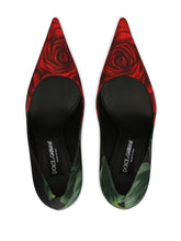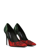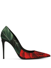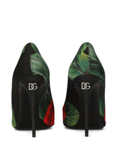 Dolce & Gabbana Lolla black leather pumps with floral jersey fabric.
