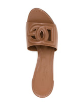 Dolce & Gabbana camel leather heeled mules with embossed Millennialls DG logo.