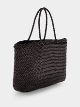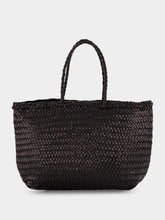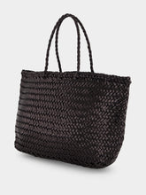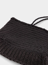 The "Grace Basket Mini" in black is an elegantly compact version of our signature Grace basket, made from handwoven buffalo calf leather. This unlined, open-top design showcases a unique diagonal weave, lending structure and style to the soft leather. With braided top handles, this mini basket bag offers a refined yet laid-back aesthetic perfect for any occasion. Inside, each Dragon Diffusion bag carries an antiqued St. Christopher medal charm, symbolizing the patron saint of travelers and serving as our exclusive seal of authenticity.