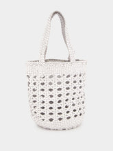 White Handwoven Leather Bucket Bag