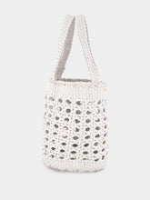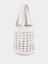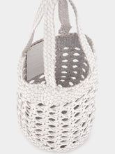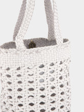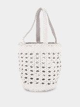 This artisanal white bucket bag by Dragon Diffusion showcases impeccable craftsmanship with its handwoven buffalo calf leather design. The intricate cannage pattern lends a breezy, openwork aesthetic, perfect for summer outings or adding a unique texture to any ensemble. Featuring sturdy flat handles, this versatile bucket bag is both stylish and functional, providing ample space while maintaining a lightweight, airy feel. Crafted entirely from premium leather, this piece combines durability with refined elegance, ideal for the sophisticated woman.