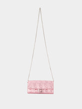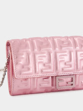This Baguette continental wallet combines elegance and functionality. Crafted in pink metallic calfskin with an embossed FF motif, it features a detachable thin chain shoulder strap, allowing it to transition seamlessly between a clutch and cross-body accessory. The organized interior includes two gusseted compartments, a zip pocket, two flat pockets, and ten card slots, providing ample storage. Accentuated with palladium-finish metalware, this versatile piece is perfect for sophisticated occasions or daily essentials.