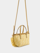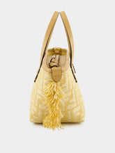 The Beige Mini Roll by Fendi is a refined reinterpretation of a 1997 classic, crafted from jacquard fabric in natural tones with the iconic FF motif in viscose raffia. Adorned with delicate fringed edges and gold-finish metalware, it exudes artisanal elegance. With dual beige calfskin handles and a detachable, adjustable strap, it offers versatile styling—handheld, shoulder, or cross-body. Compact yet functional, it fits essentials like a smartphone, cardholder, keys, and lipstick.