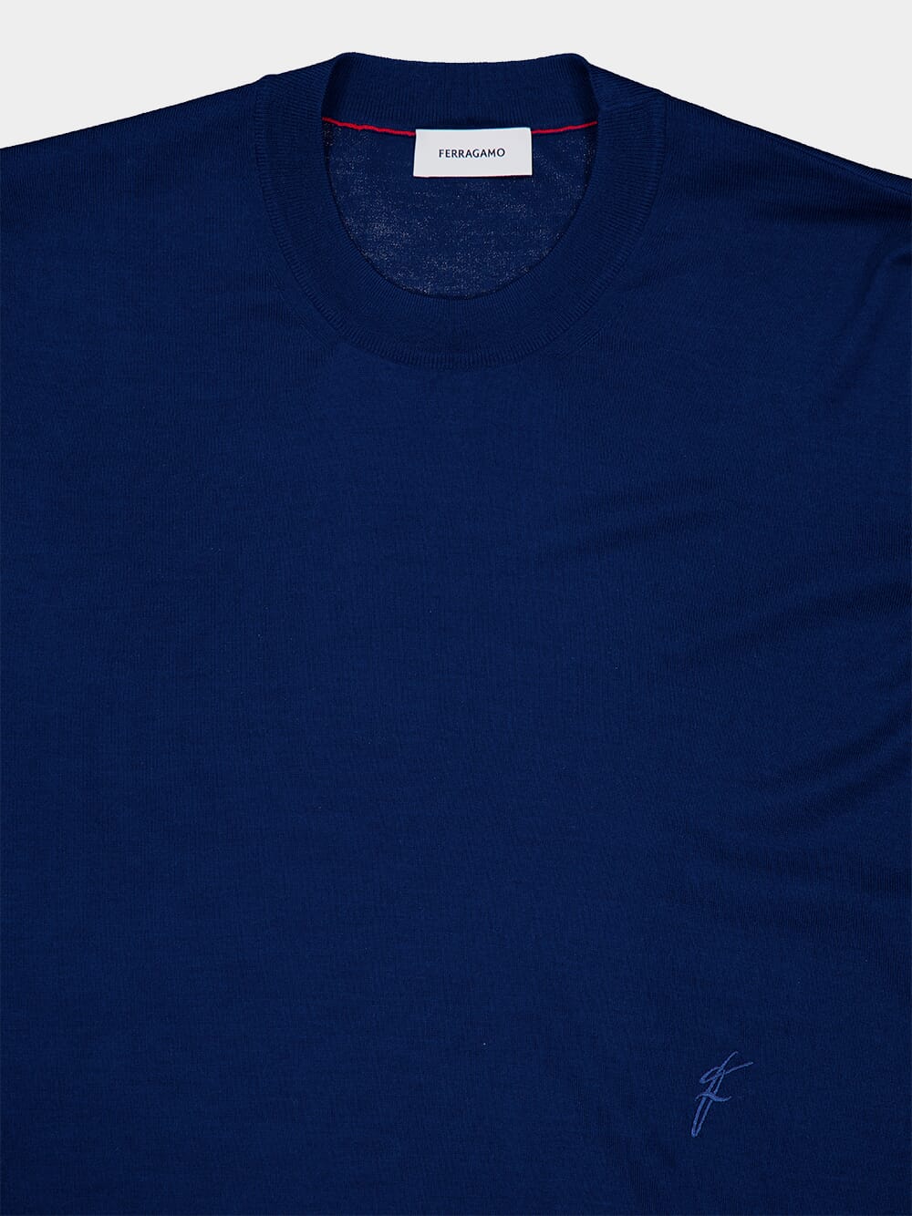 This luxurious teal blue long-sleeve crew neck sweater from Ferragamo is crafted from fine wool, offering supreme softness and comfort. Designed with a timeless silhouette, it features a relaxed fit and refined detailing, making it a versatile wardrobe staple for elevated casual or smart looks. Expertly made in Italy, this piece reflects Ferragamo's commitment to quality craftsmanship and sophisticated style.