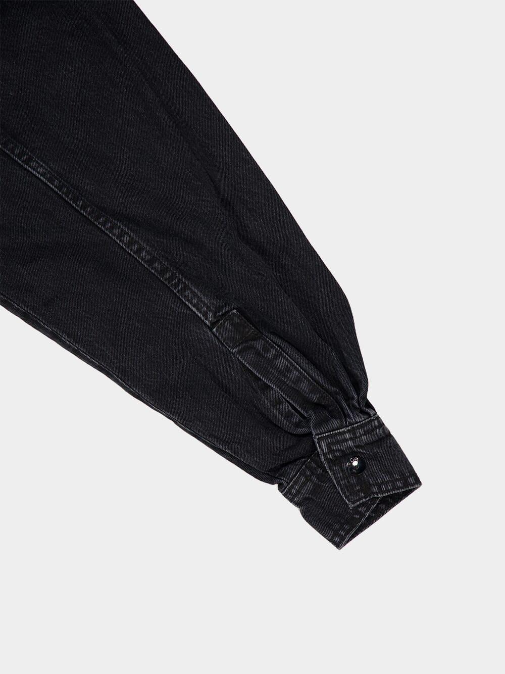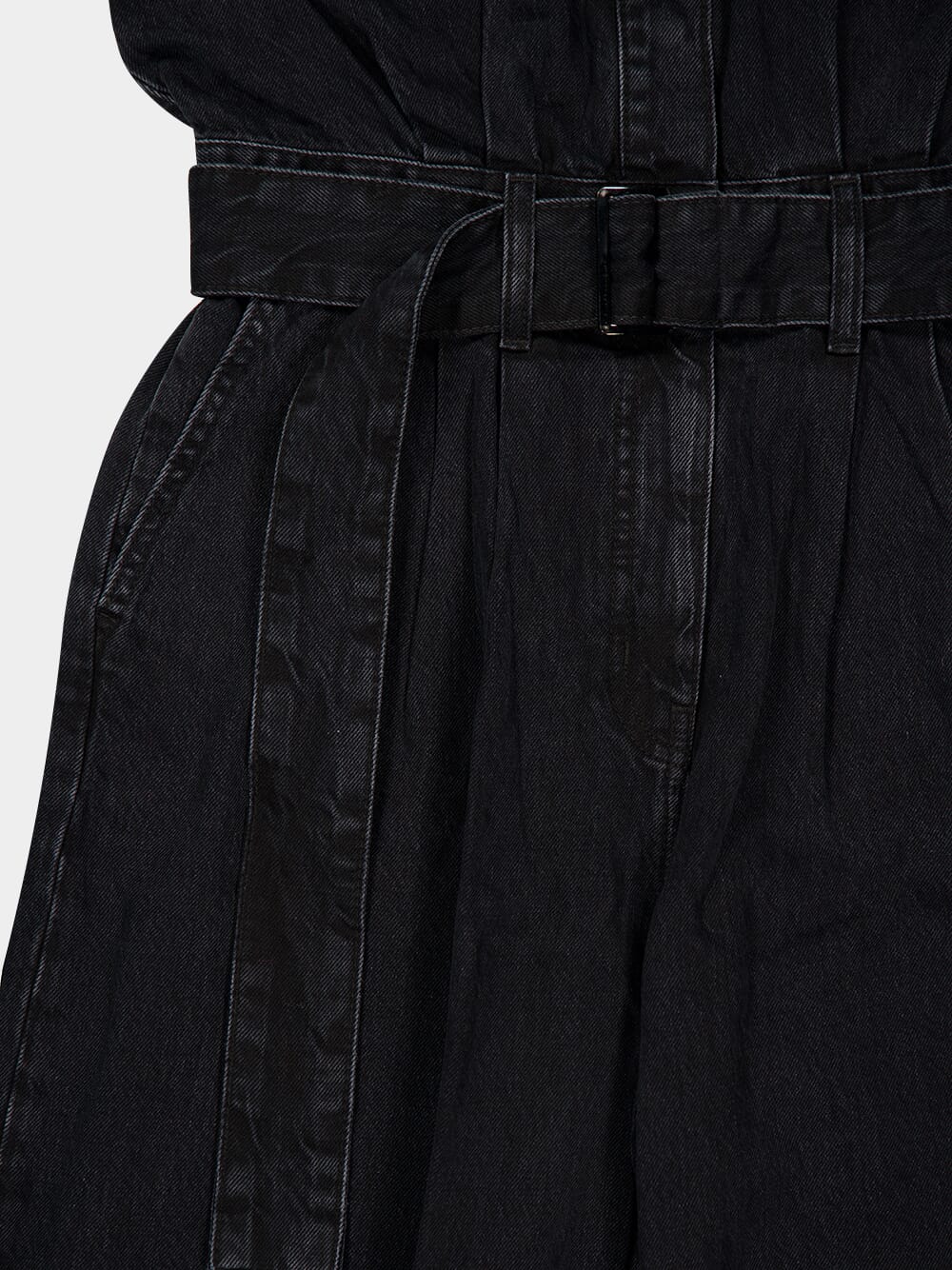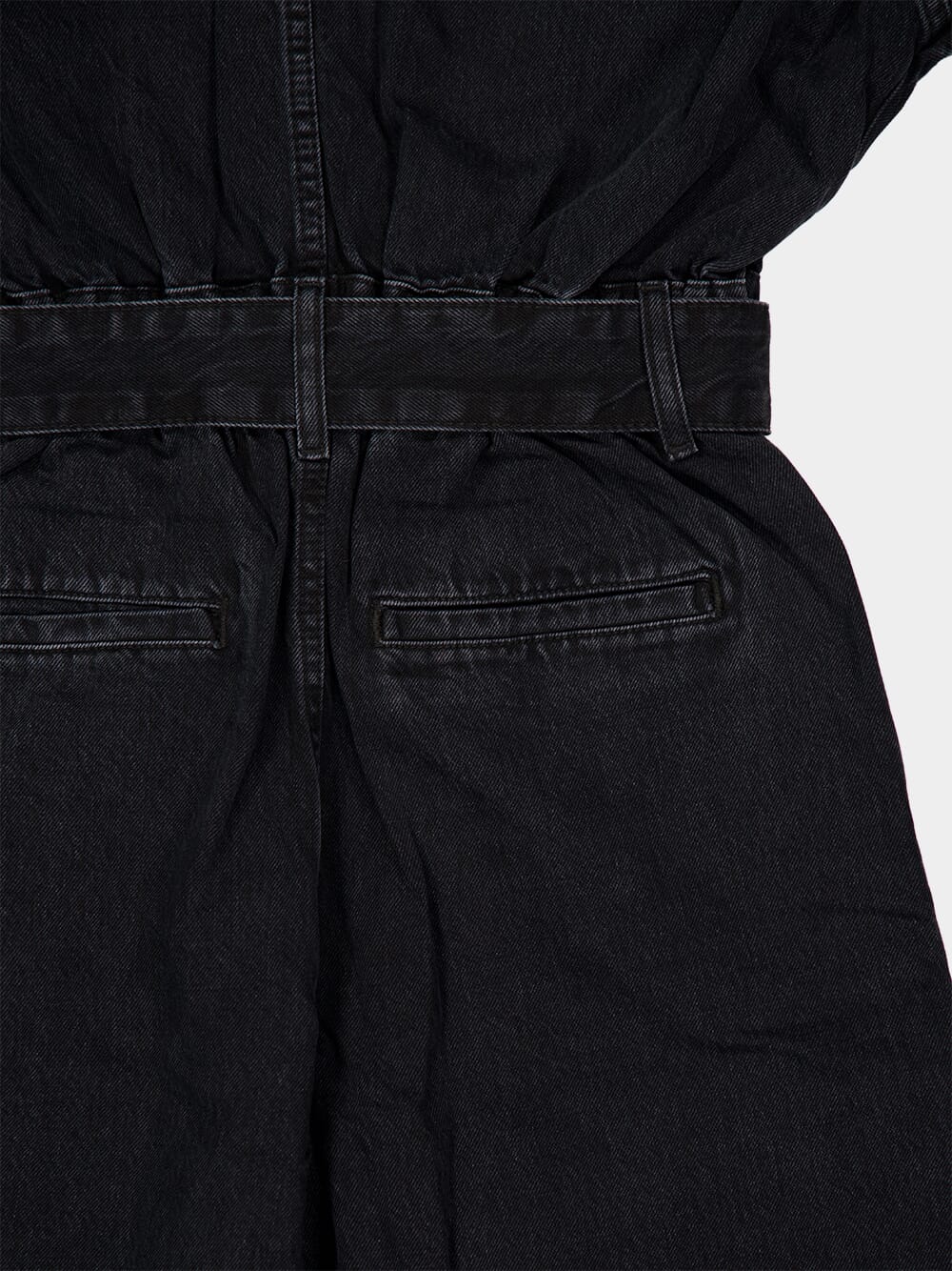 The Cocoon Jumpsuit in Portia redefines utilitarian elegance with a sophisticated all-black wash. Crafted with meticulous attention to detail, it features a full-length inseam, a structured stand collar, and asymmetric chest pockets that add a modern twist. The detachable belt accentuates the waist, creating a flattering, cinched silhouette. Perfect for versatile styling, this FRAME jumpsuit is your go-to piece for effortless yet polished ensembles.