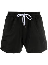 Frescobol Carioca white cotton swim shorts with elasticated and contrastings drawstring waist.