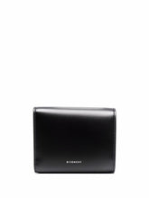 Givenchy 4G black smooth leather three-section wallet with press button closure.