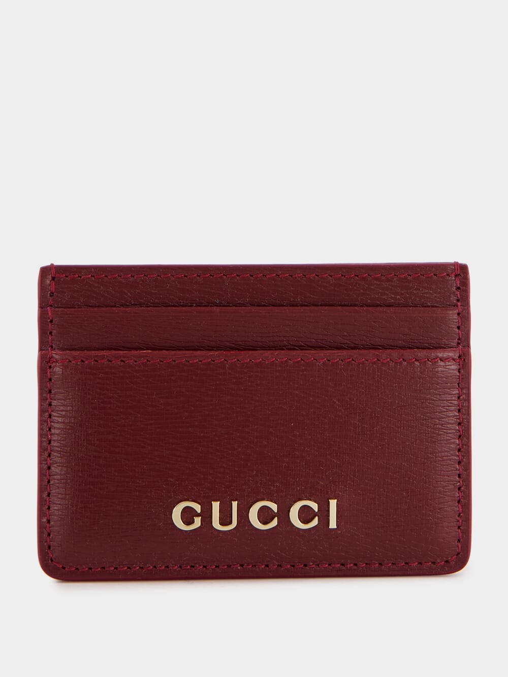 A refined accessory for everyday use, this Gucci card case embodies elegance and practicality. Crafted in the signature Rosso Ancora red leather, it features a sleek silhouette enhanced by the Gucci script detail in light gold-toned hardware. The taffeta lining complements the luxurious design, while four card slots and an open pocket provide ample space for essentials. A timeless piece designed to fit seamlessly into any sophisticated wardrobe.