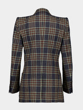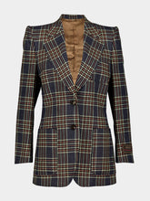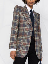 Gucci blue linen and silk single-breasted jacket with checked pattern and Gucci with Web label.