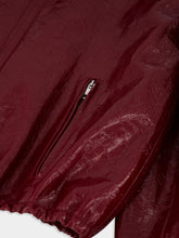 This striking bomber jacket, crafted from shiny GG embossed leather in the signature Gucci Rosso Ancora red, offers a chic and modern cropped fit. The jacket features a point collar, long sleeves, and two front zip pockets. The elastic cuffs and hem enhance its structure, while the ivory Horsebit jacquard lining adds a touch of luxury.