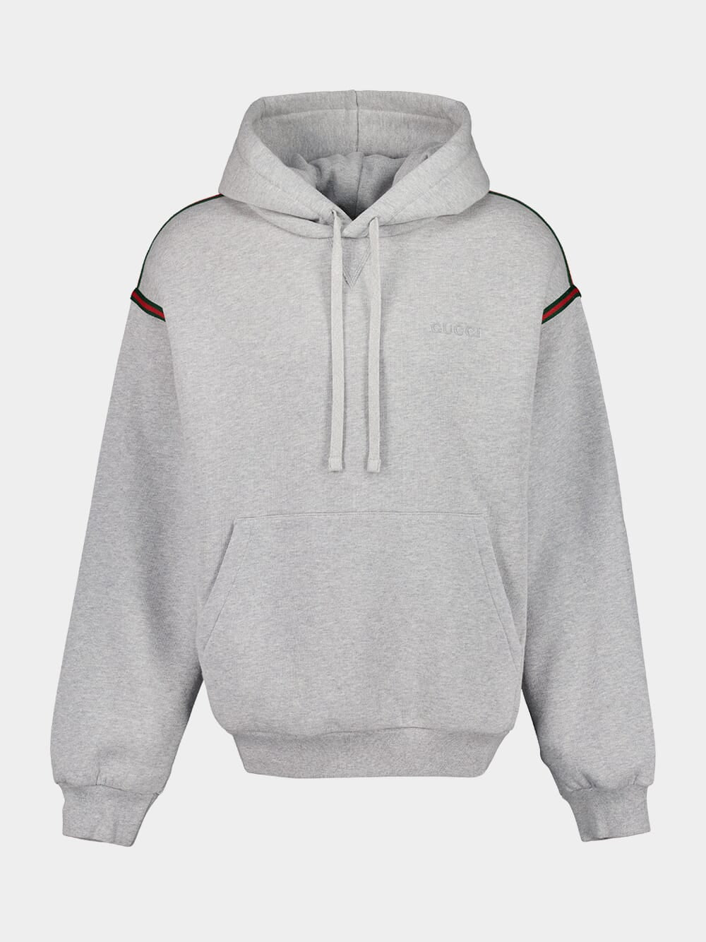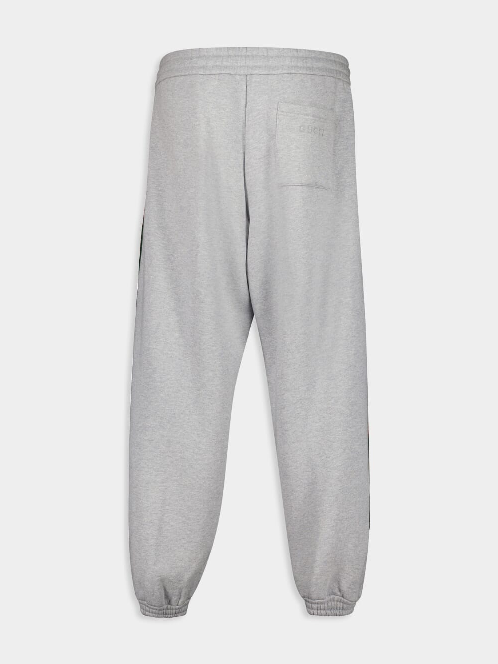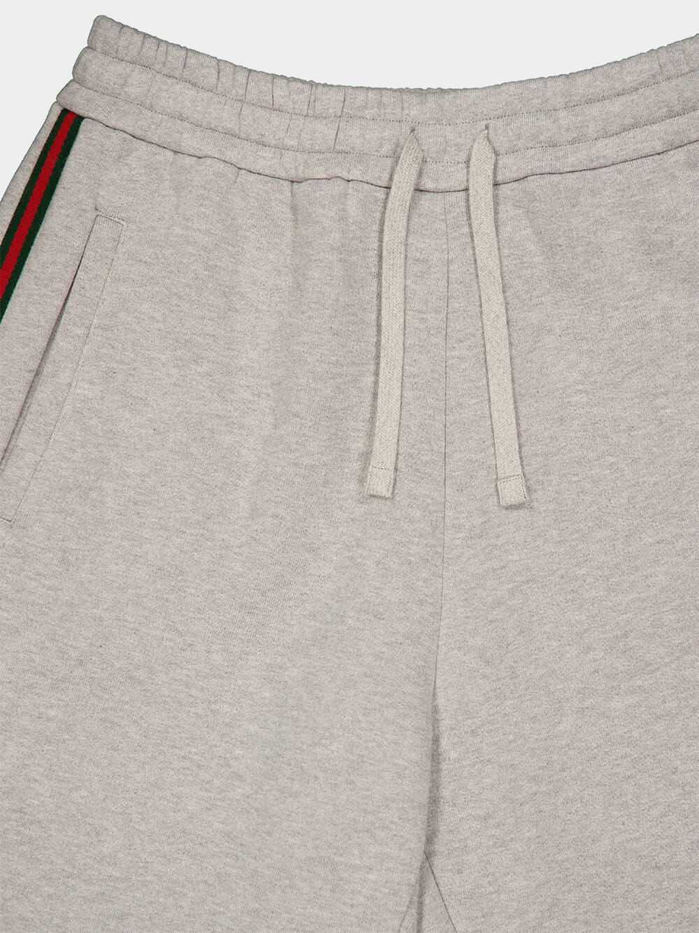 Showcasing Gucci's signature craftsmanship, the Grey Cotton Jersey Jogging Pant combines comfort with iconic style. Crafted in brushed grey mélange cotton jersey, these joggers feature green and red Web trims and Gucci embroidery, offering a refined casual look.
