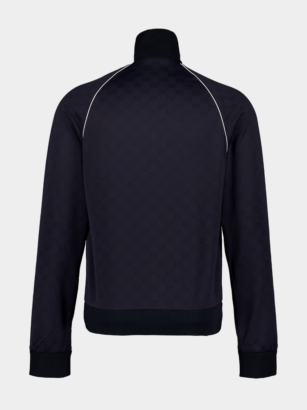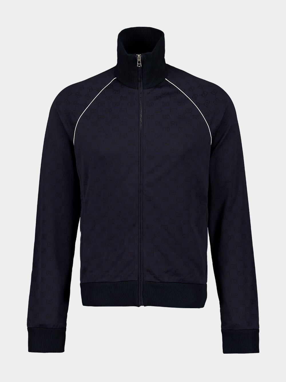 Navy Blue GG Nylon and Jersey Zip Jacket