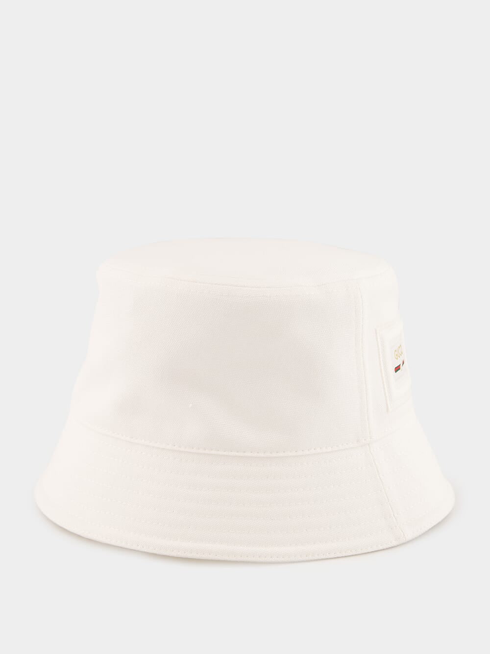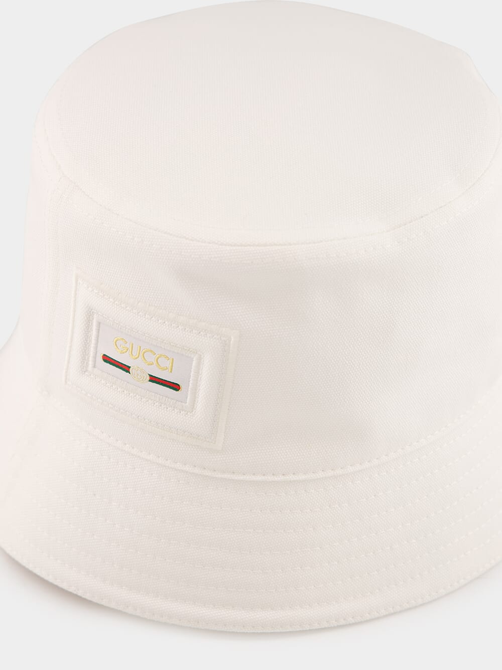 This white cotton canvas bucket hat blends archival Gucci details with modern streetwear influences. Featuring an Interlocking G and Web embroidered label, it delivers a timeless yet contemporary style. Expertly crafted in Italy for premium quality.