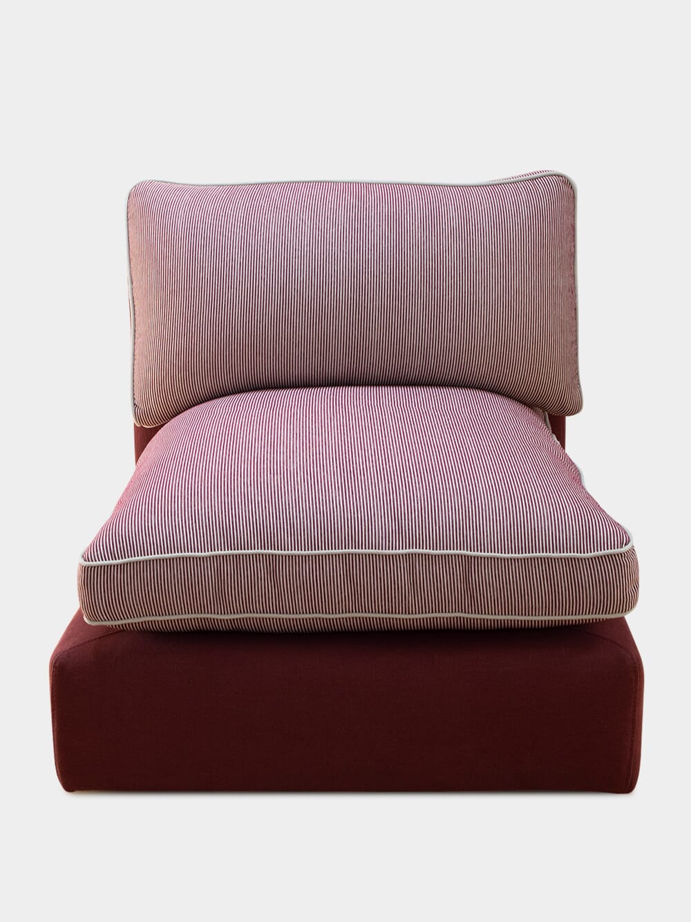 This corner sofa module in bordeaux linen and stripped corduroy are the perfect combination of functionality and elegance. Designed to fit seamlessly into modular arrangements, it allows you to create customized seating layouts tailored to your space. Crafted with soft, high-quality linen upholstery and supported by a sturdy wooden frame, this corner piece provides exceptional comfort and durability. Its bordeaux tone complements any interior style, from modern to classic, making it an excellent choice for enhancing your living area. Pair it with other pieces in the collection to complete your modular sofa.