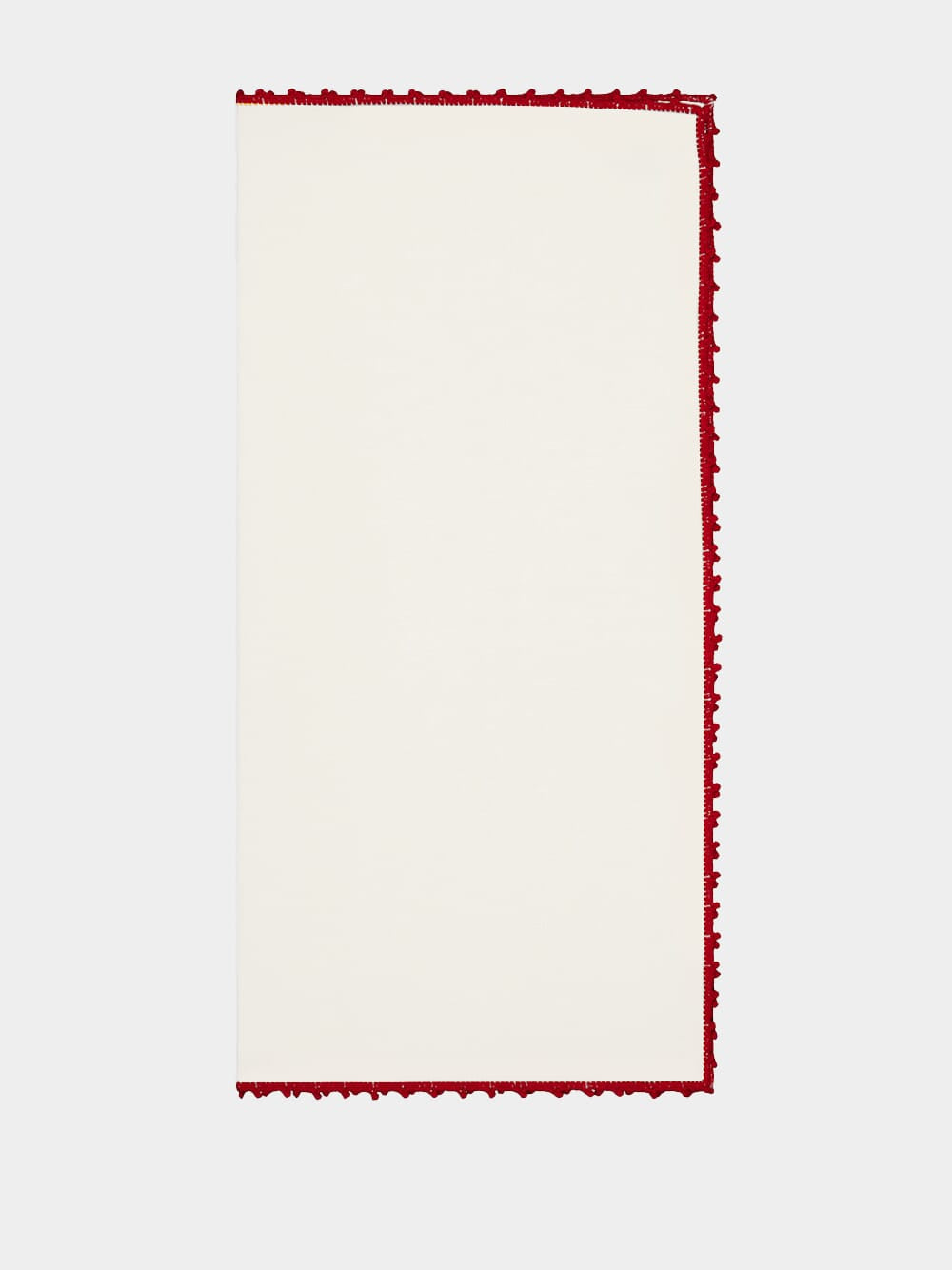 Hand-Embroidered Teresa White Linen with Red Crochet Napkin