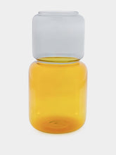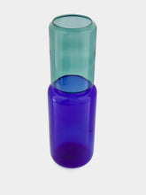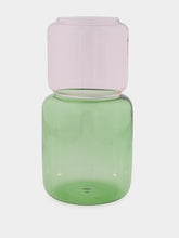 This exquisite hand-made vase features a stunning combination of pink and green glass, meticulously flame-worked to create a unique and vibrant piece. Its layered design and harmonious colors make it a perfect decorative accent for any space, adding a touch of elegance and sophistication. Ideal for showcasing flowers or as a standalone art piece. Part of the Revolve collection designed by Brian Sironi.