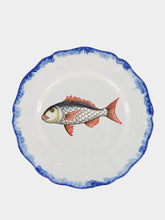 Peregrinos Bowl from JO's ceramic tableware collection. Hand-painted in Carmen de Viboral, Colombia, each piece is a testament to meticulous craftsmanship and a free-hand interpretation of JO archive prints. Crafted by skilled artisans across generations, this remarkable collection offers an array of dinnerware adorned with intricate brushstrokes.