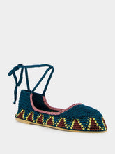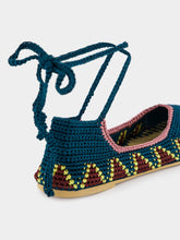 These seaweed blue crochet ballerinas with vibrant multicolored patterns are a testament to artisan craftsmanship. The hand-crocheted design features charming lace-up ankle ties, providing an effortless grace and bohemian sophistication. The snug leather interior and durable sole ensure both comfort and style.