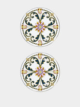 Cortile Blue Porcelain Set of 2 Dessert Plates - a masterpiece born from a collaboration with Italy's porcelain legends, Ancap. Crafted from premium porcelain and adorned with exquisite hand-painted 18k gold trims, these dessert plates elevate your dining experience.