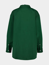 This exquisite long-sleeved button-up shirt by La DoubleJ combines refined tailoring with a vibrant foulard print. Crafted from luxurious silk, it features a structured collar, buttoned cuffs, and an asymmetrical scarf-style hem that adds fluidity and movement. The rich green base is complemented by intricate multicolor patterns, evoking an artistic and sophisticated aesthetic. Perfect for both day and evening wear, it pairs beautifully with tailored trousers or denim for an effortlessly chic look.