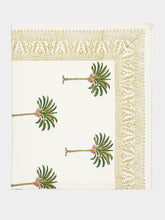 This exquisite tablecloth, crafted from premium cotton, showcases a handprinted tropical palm motif in vibrant pink and green hues. Its long, elegant form is perfect for adorning your dining area, adding a touch of sophistication and warmth to any gathering. Ideal for both casual brunches and formal dinners, this tablecloth promises durability and style.