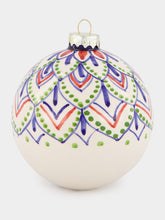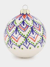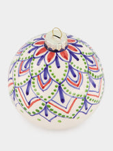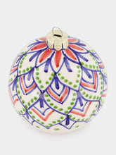 Blue and Red Ceramic Christmas Ball. Each ornament is adorned with a harmonious blend of rich blue and festive red, creating a striking visual impact. Crafted with care and attention to detail, these balls bring a touch of elegance to your seasonal decor.
