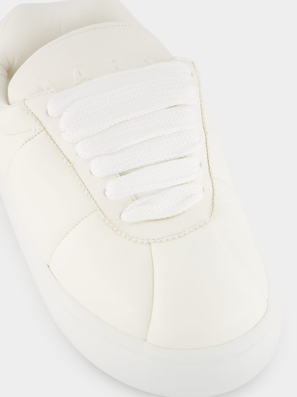 Step into sleek style with the Bigfoot 2.0 Sneaker, expertly crafted in sumptuous white leather. This refined footwear boasts a minimalist design with a bold silhouette, ideal for the fashion-forward individual seeking a staple with impact.