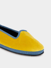 These hand-sewn Furlane Modigliani flats, crafted in Italy, are made from luxurious 100% cotton velvet. The vibrant yellow body contrasts with blue trims and soles for a chic, eye-catching look. Complete with a durable rubber sole, these flats offer both comfort and elegance, perfect for any sophisticated wardrobe.