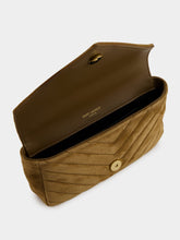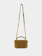 A refined take on an iconic design, the Golden Leaf College Mini bag brings effortless elegance in a compact form. Crafted from luxurious suede in a rich brown hue, this mini version of the classic College bag is adorned with the signature Cassandre logo and chevron-quilted topstitching for a sophisticated finish. Featuring a structured top handle and a detachable leather-and-chain strap, it offers versatile styling options—wear it as a shoulder bag or carry it by hand. With bronze-toned hardware, a magnetic snap closure, and a soft cotton-lined interior, this Italian-crafted piece is a timeless companion for any occasion.