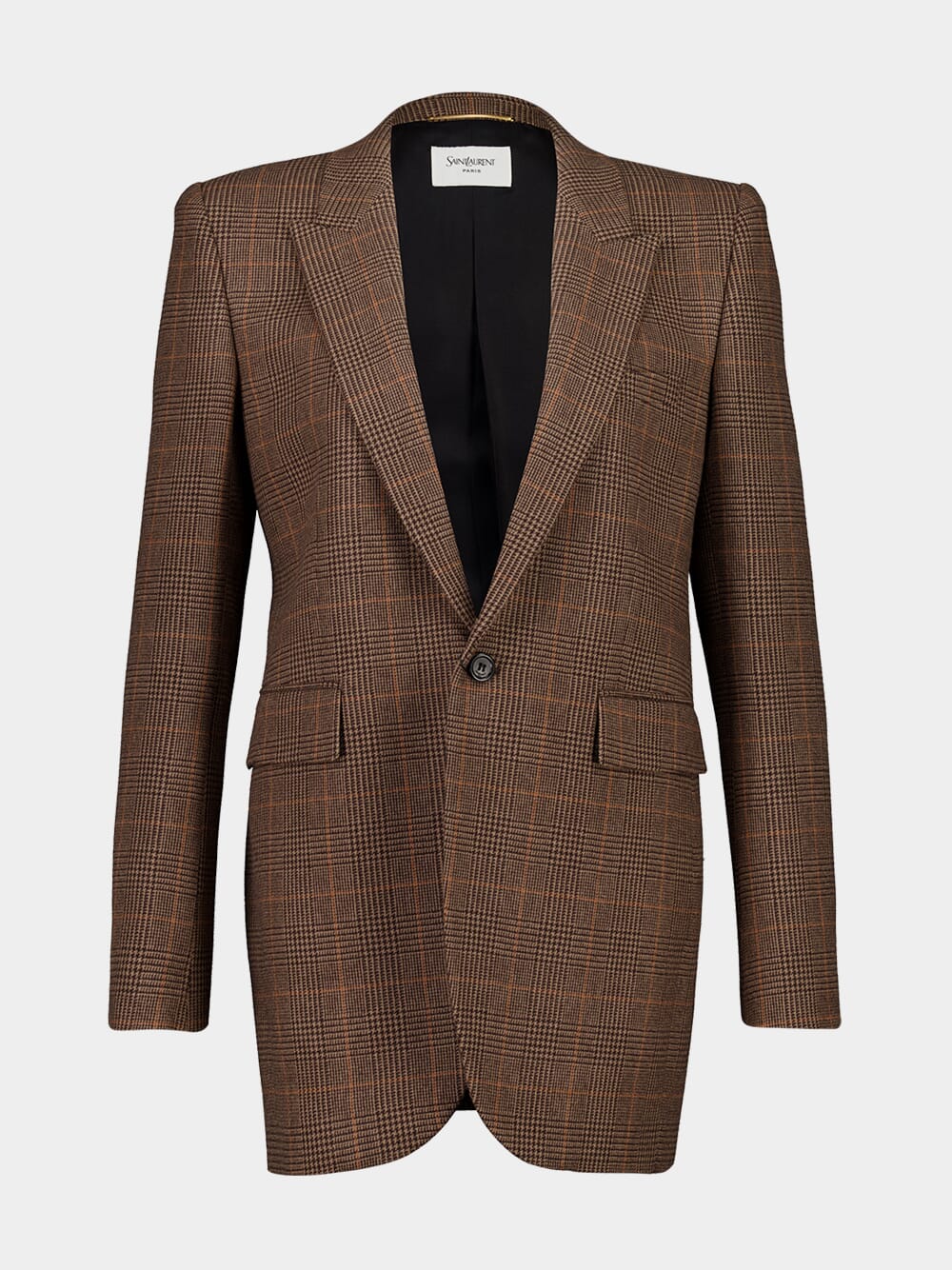 Elevate your wardrobe with the Roux Midi Skirt by Saint Laurent, crafted from a luxurious blend of certified Prince of Wales wool and cashmere. This elegant skirt features an inverted box pleat design that offers graceful movement and sophistication. Fully lined in silk, it includes concealed side pockets and a discreet side zip closure for a sleek finish. Made in Italy with expert craftsmanship, this piece blends timeless style with premium materials.