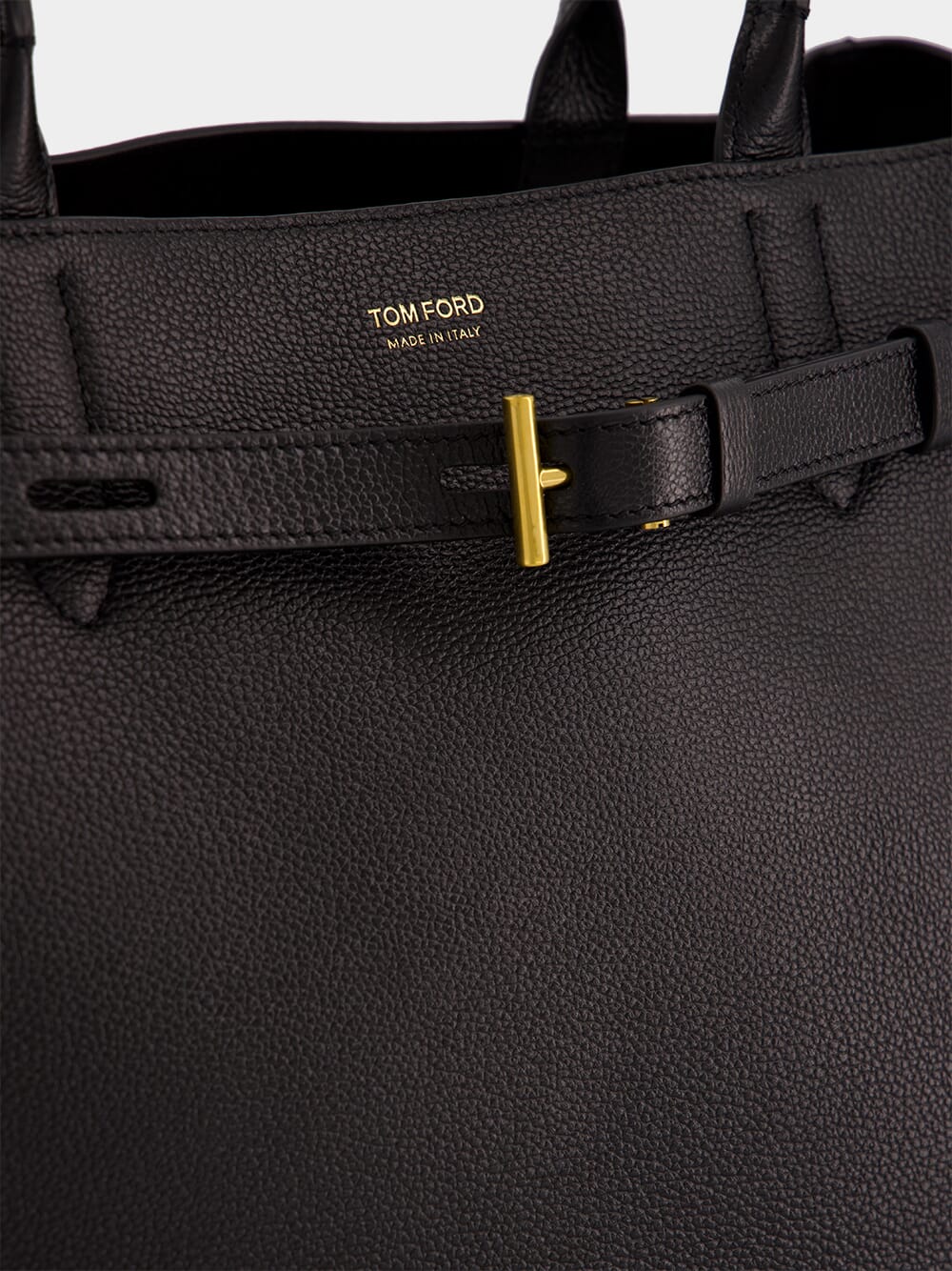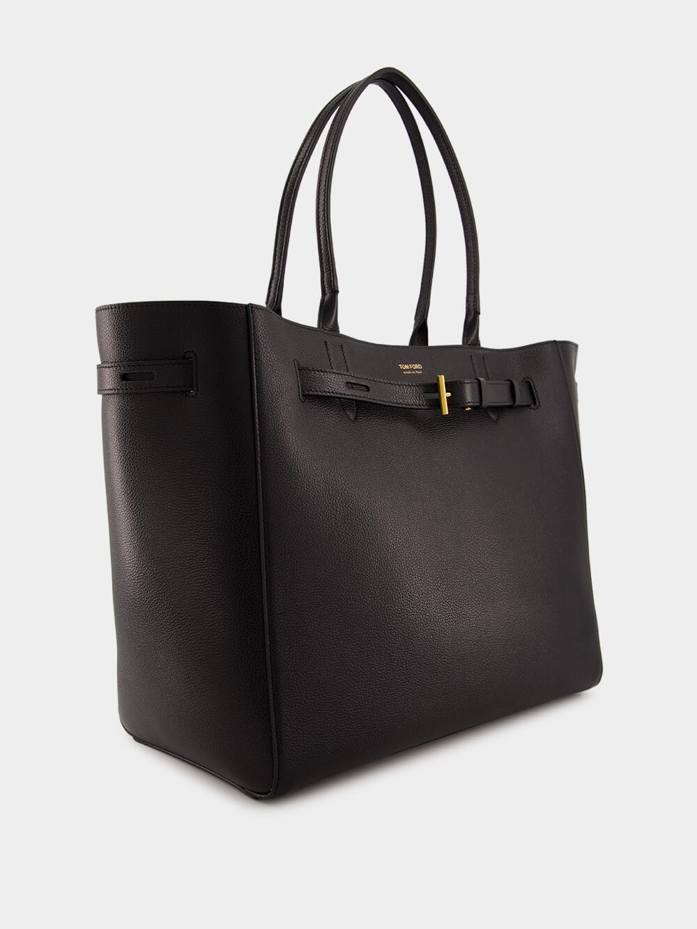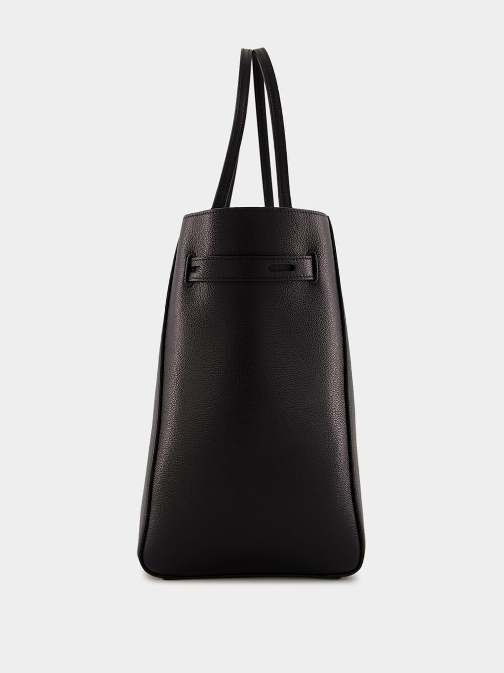 The Audrey Large Tote in black grain leather is a sophisticated blend of style and functionality. Featuring the iconic metal T detail and a functional leather belt, it allows the sides to be collapsed or expanded to suit your needs. This spacious design boasts one main compartment, an inner zipped pocket, and is lined with soft microfiber for a luxurious finish. With dimensions of 37 x 31 x 19.5 cm and a handle drop of 24.5 cm, this versatile tote is perfect for both professional and casual settings, offering ample space and timeless elegance.