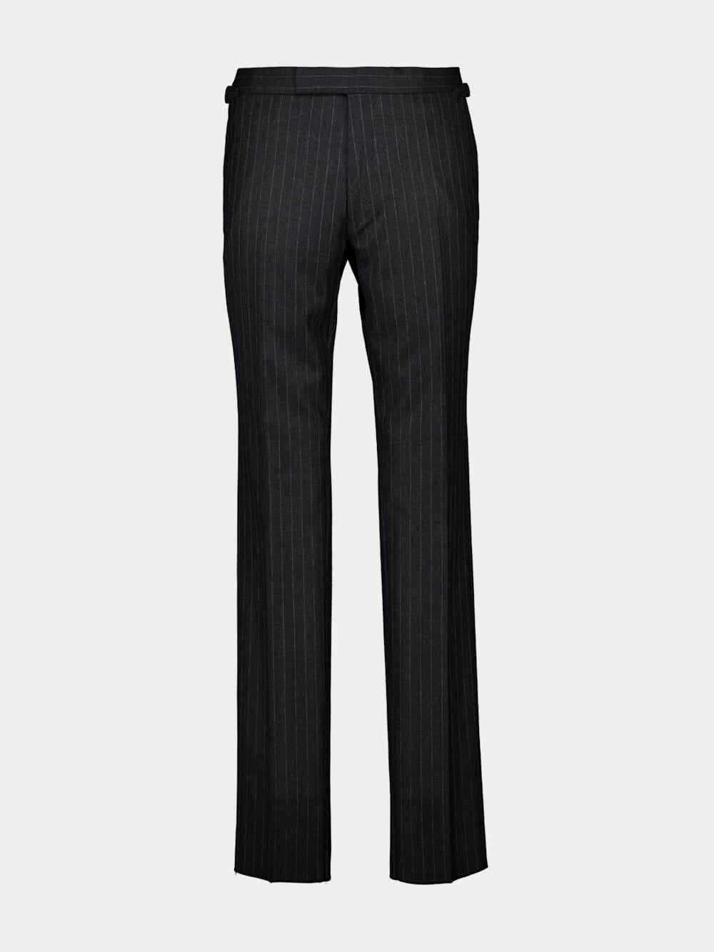 This dark grey single-breasted wool blazer by Tom Ford is a timeless expression of sartorial precision. Featuring a classic pinstripe pattern, structured shoulders, peak lapels, and a tailored silhouette, it blends elegance with masculine refinement. The full lining ensures a smooth fit, making it ideal for formal and business occasions.