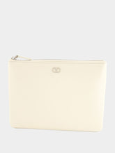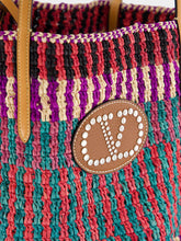 Hand-woven natural raffia shopping bag from Valentino Garavani, detailed with a leather patch and VLogo Signature metal feature. Designed for versatility, it can be comfortably worn over the shoulder thanks to its leather handles. The interior includes a removable leather pouch. Finished with antique palladium-finish hardware.
