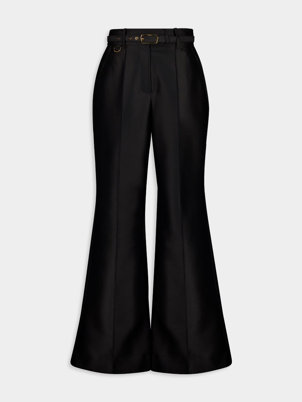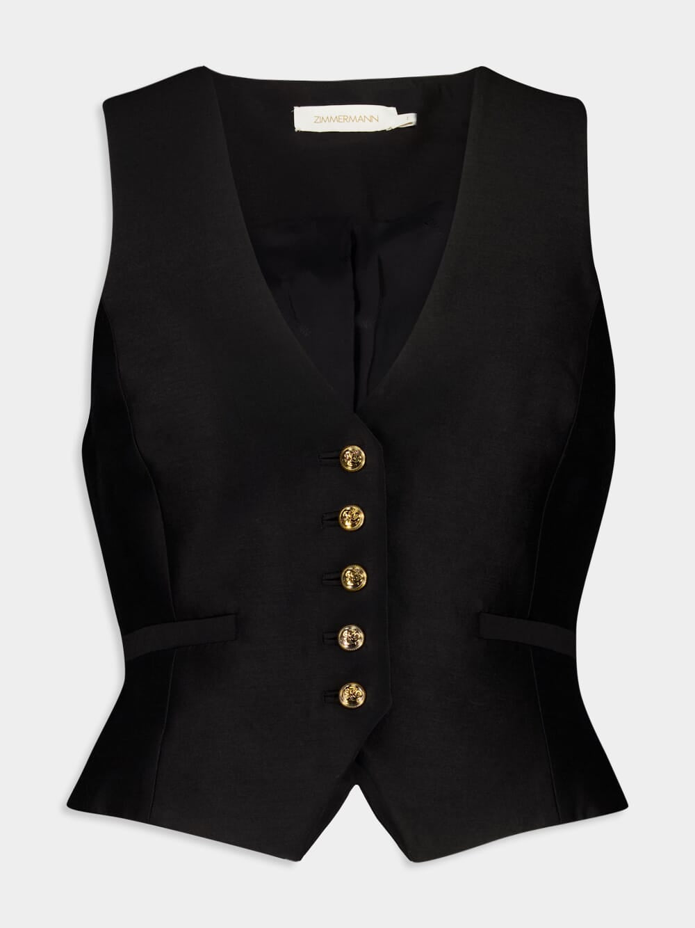 The Hypnotic Tailored Jacket in black showcases an elongated silhouette crafted from a luxurious wool and silk blend. Designed with peak lapels, a single gold-toned button, and padded shoulders, this fully lined blazer brings modern sophistication to classic tailoring. Featuring flap pockets, a chest welt pocket, and a back vent, it is an elevated essential for refined wardrobe statements.
